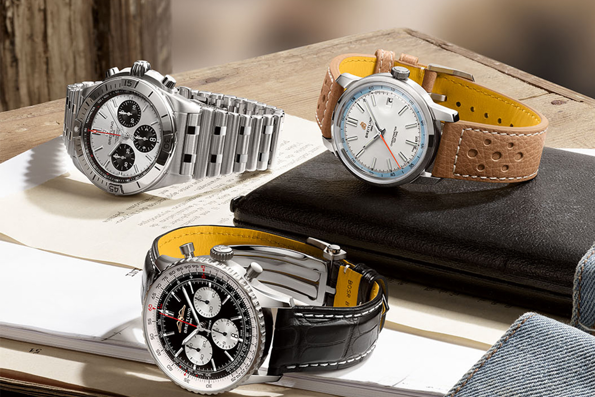 Today, it is still breaking new ground as a casual, inclusive, and sustainable luxury brand with more than 290 industrial loft-inspired retail locations around the world. Breitling’s collections center around air, land, and sea pursuits, all captured in the brand’s unmistakable modern-retro style.
