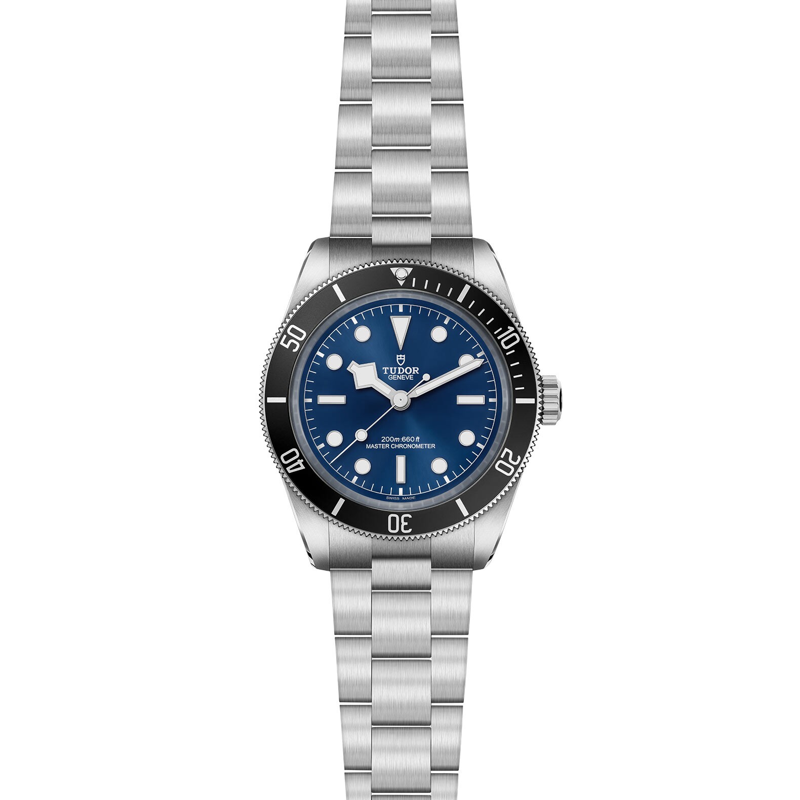 Clasp: 3-link stainless steel bracelet with smooth side flanks and polished and satin finishes, with tudor “t-fit” clasp