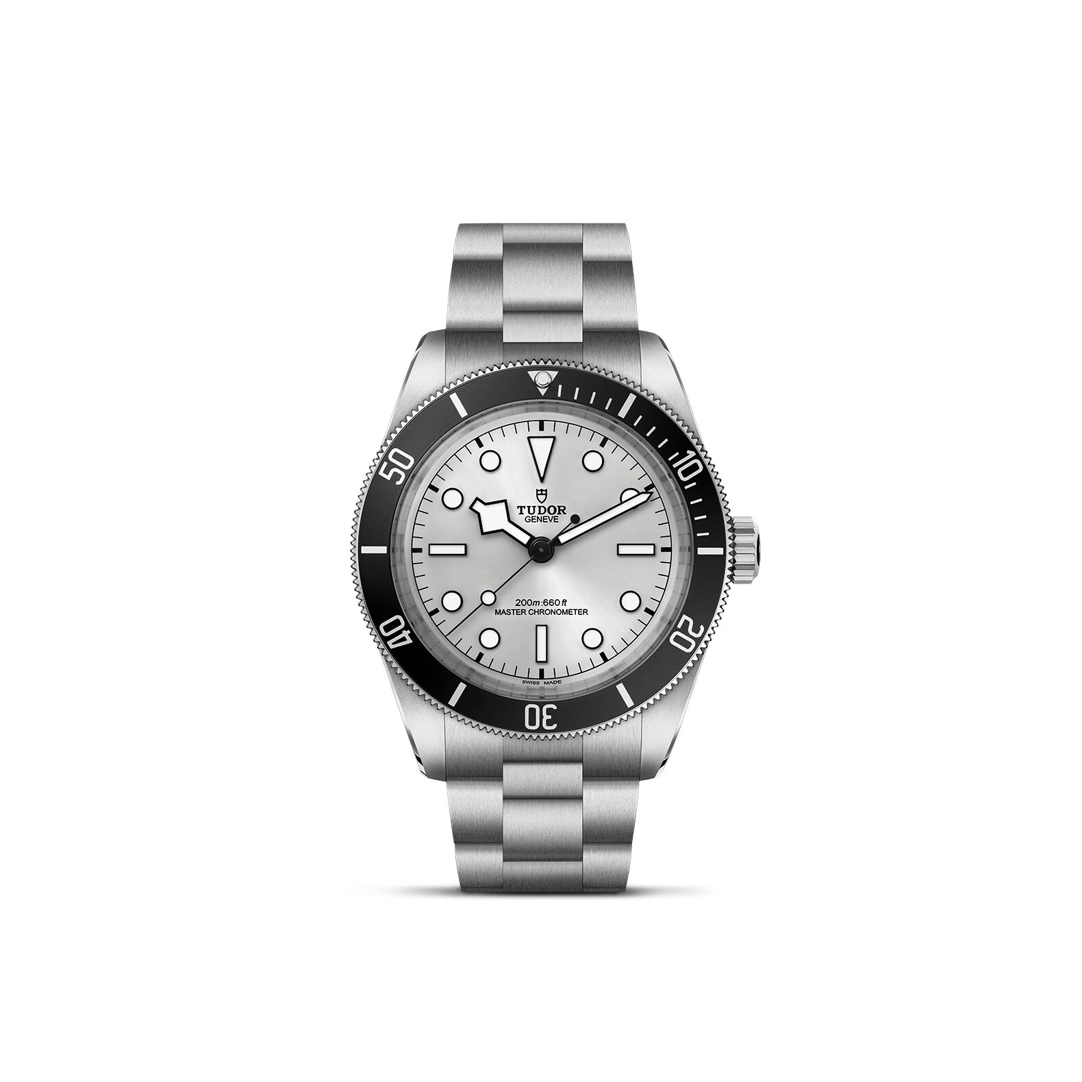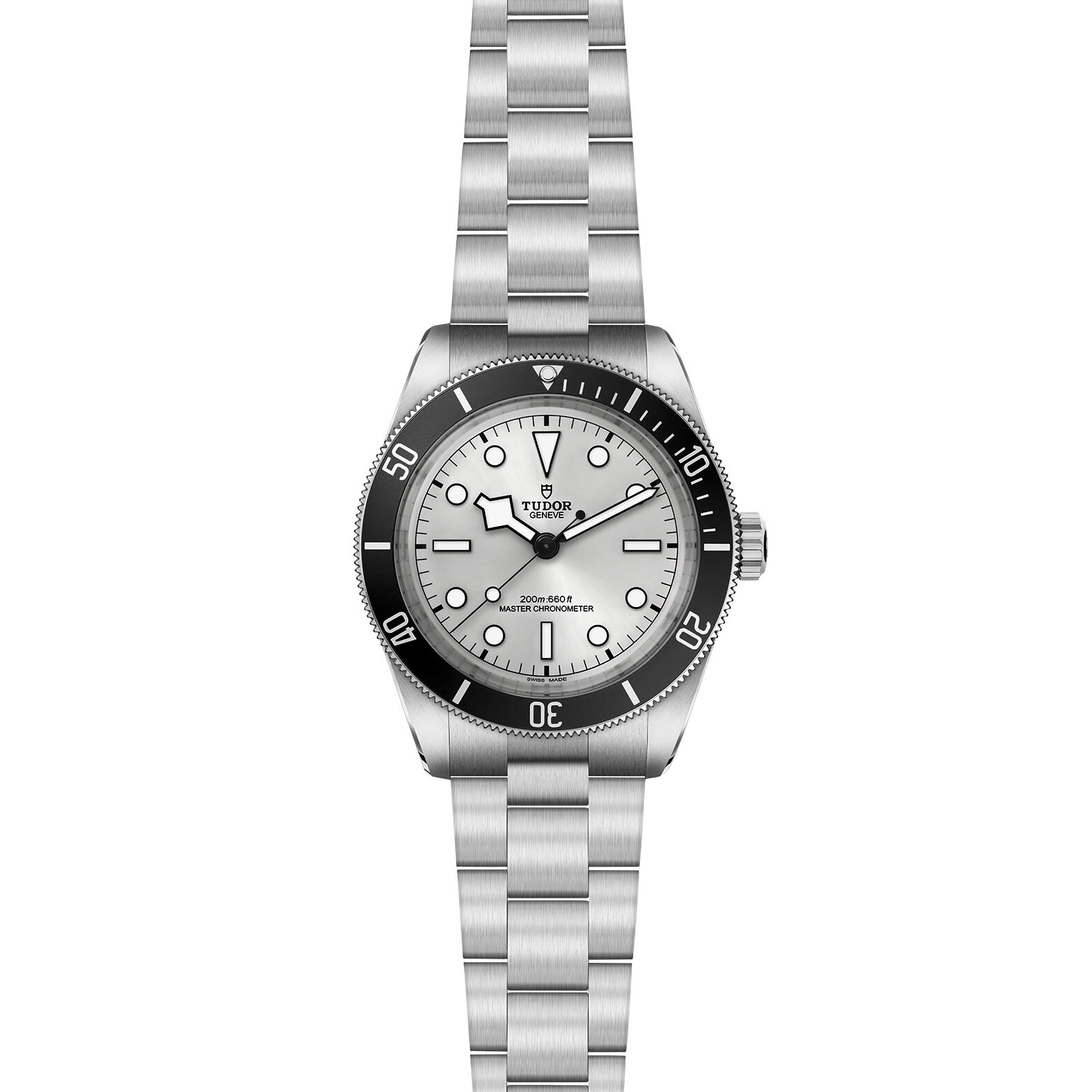 Clasp: 3-link stainless steel bracelet with smooth side flanks and polished and satin finishes, with tudor “t-fit” clasp