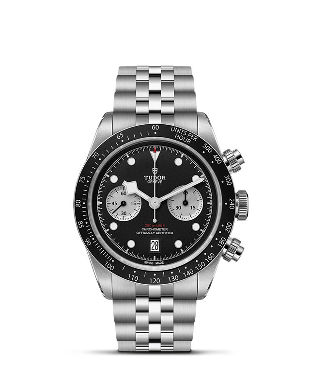 Contact Us To mark five decades of its chronographs, TUDOR offered its Black Bay Chrono model in steel with a reworked case and two dial options with contrasting sub-counters in the purest tradition of the sports chronograph. Now the model comes with the option of a 3-link or 5-link bracelet, both with "T-Fit" clasp.