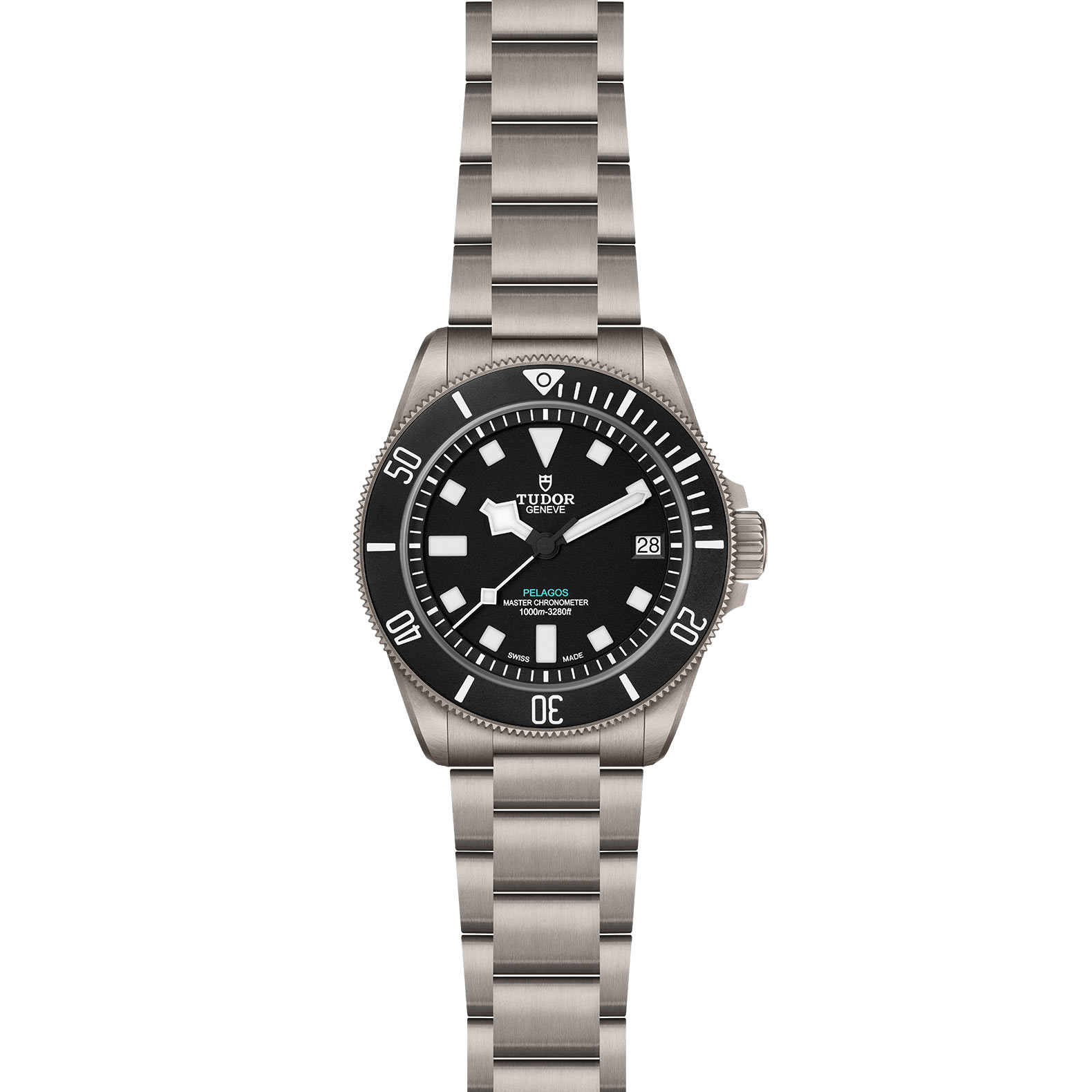Clasp: Titanium three-link bracelet with tudor “t-fit” folding clasp, safety catch and diver’s extension with new visual indicator system